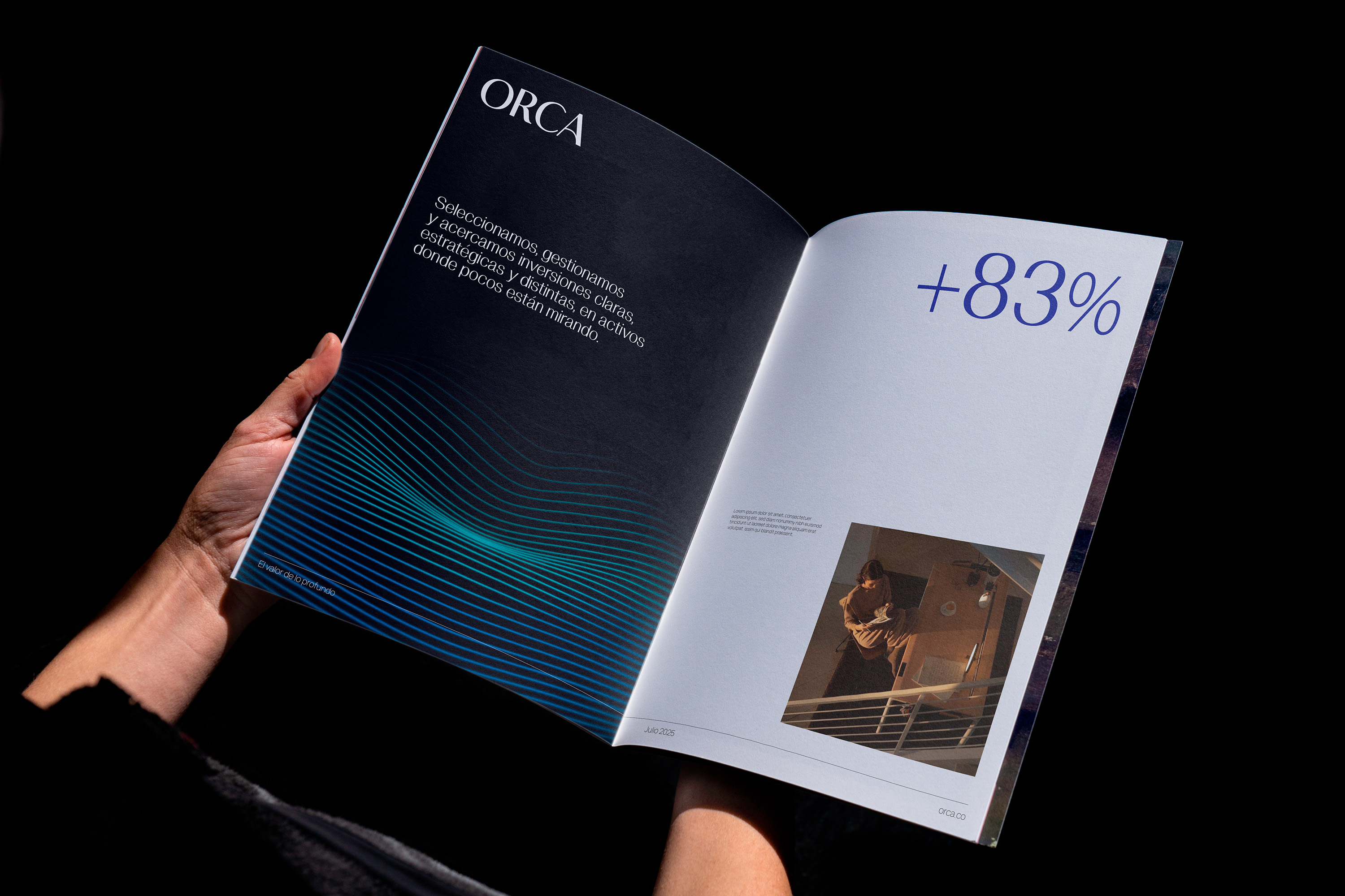Orca is a Colombian private equity firm focused on alternative assets, born with a clear ambition: to invest differently. From the very beginning, the challenge was to build a brand that matched the way they think and operate: rigorous yet agile, sophisticated yet accessible, deep yet clear.